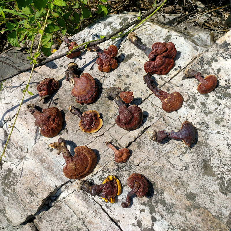 Wild small reishi mushrooms