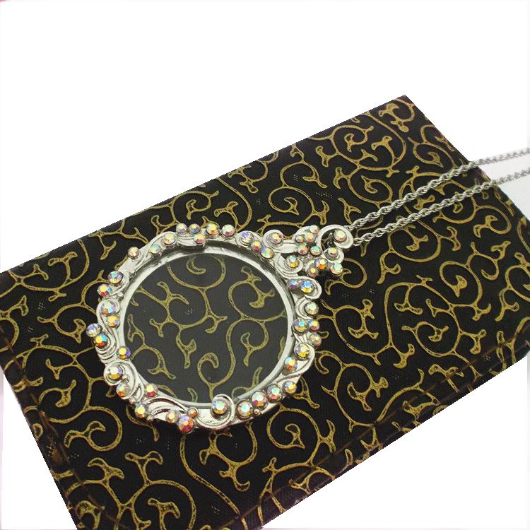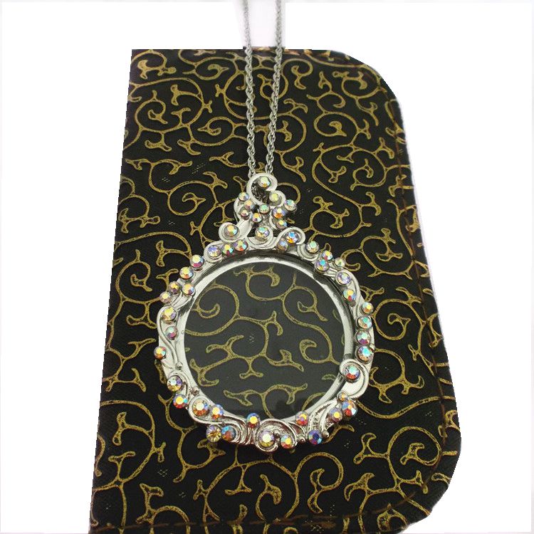 Glass lens magnifier 10 times portable pocket enlarged mirror elderly student Read with necklace fashion full drill
