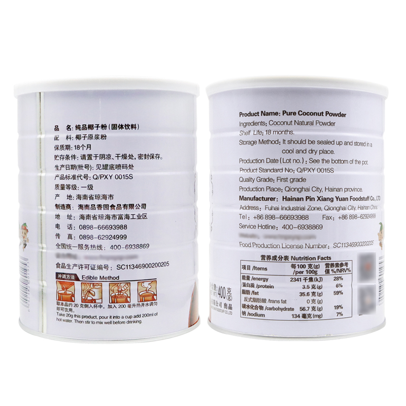 Pure coconut powder (1 bag X320g) Pure coconut powder (1 can X400g) Pure coconut powder in bulk (8 packets) Pure coconut powder in bulk (20 packets) Pure coconut powder in simple pack
