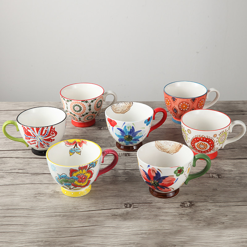 European-style hand-painted ceramic cup creative breakfast cup oatmeal cup milk cup large-capacity coffee cup large soup cup