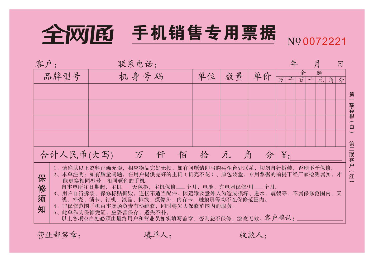 Spot mobile phone store Private note All Netcom Sales League Two-link no carbon rewritten receipt can be set