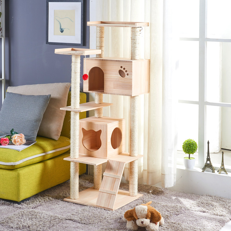 Cat climbing frame solid wood sisal cat nest villa wooden house big cat toy four seasons pet supplies cat tree small
