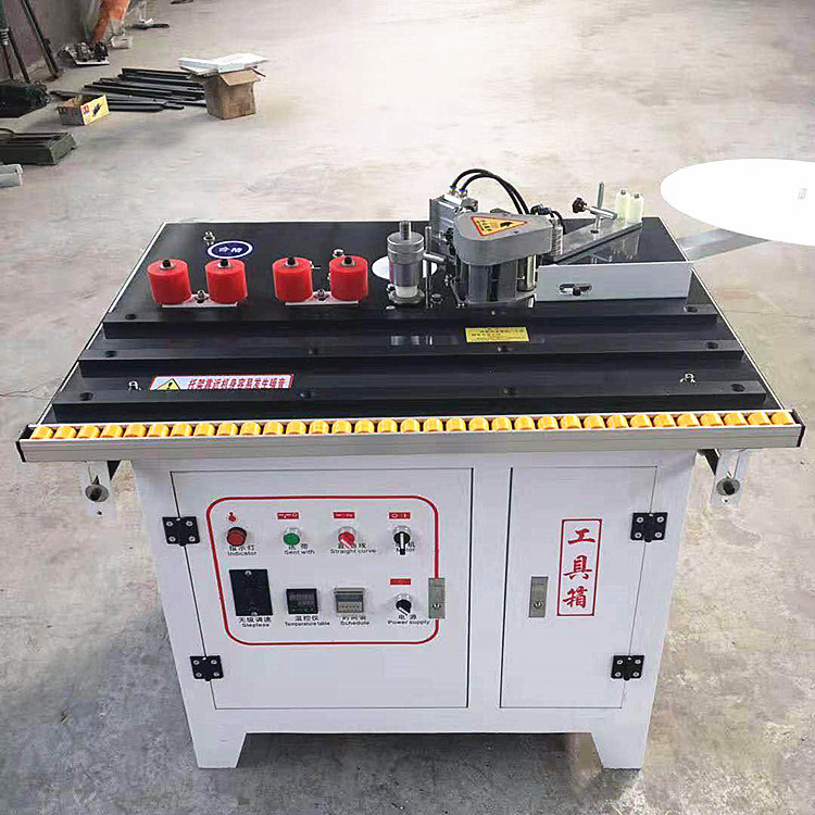 Shandong Qingdao Wood Works Machinery Equipment Home innate double-sided gluing desktop plate Merits Wire Profiled manual sealing edge machine