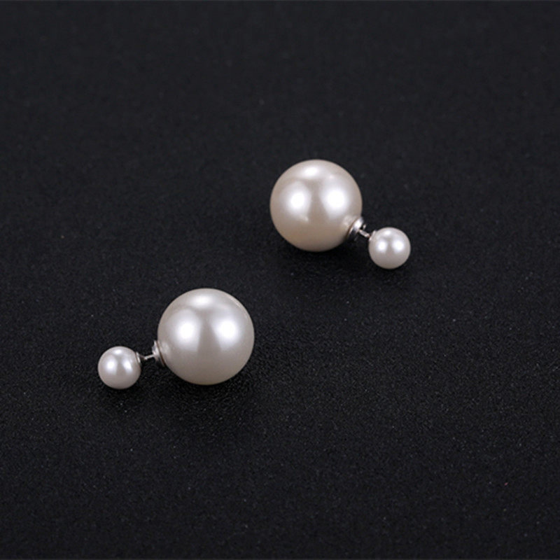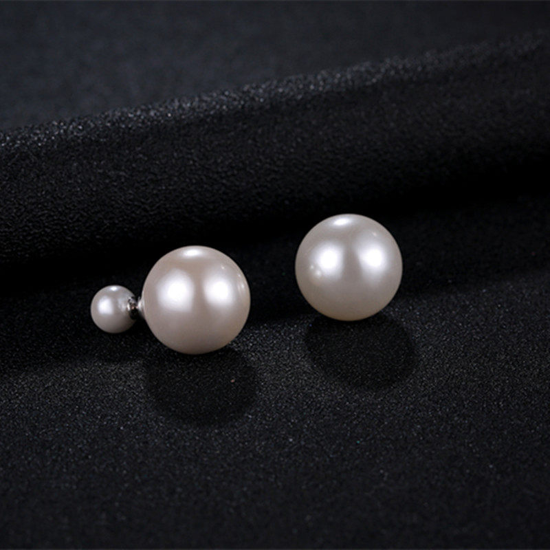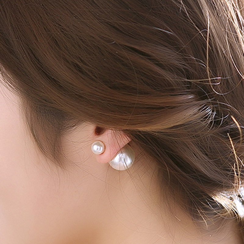 925 silver imitation pearl stud earrings female size double-sided earrings Korean, Japanese and Korean version of fashion temperament front and rear ear jewelry