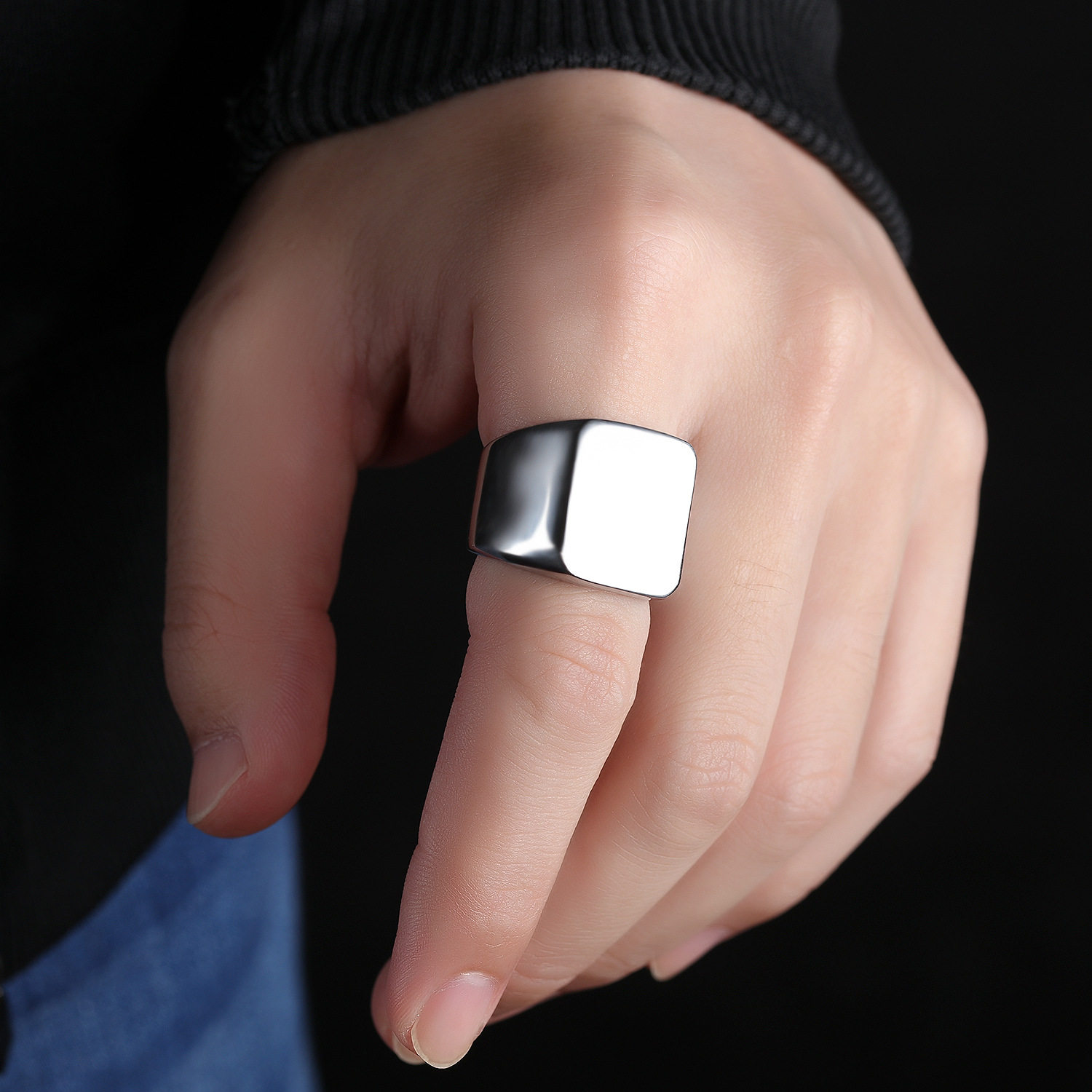 Dimahi ring male hip hop square exaggerated nightclub Trampoline Tide Man and America's retro personality Ring INS white hitch