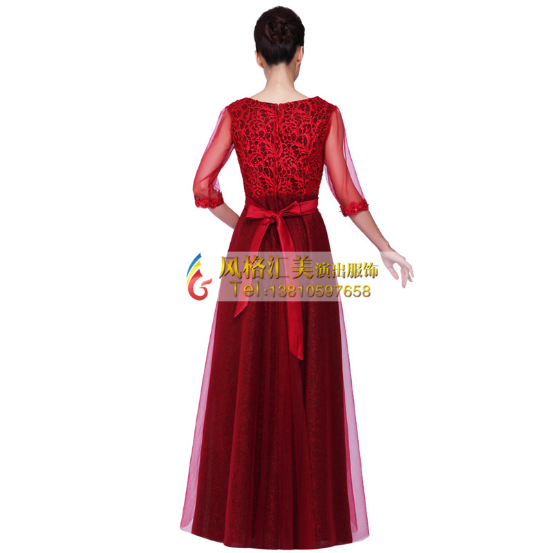 New chorus costume performance costume college student red lace slimming choir costume host annual meeting evening dress