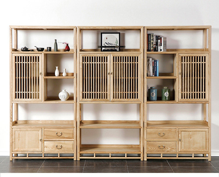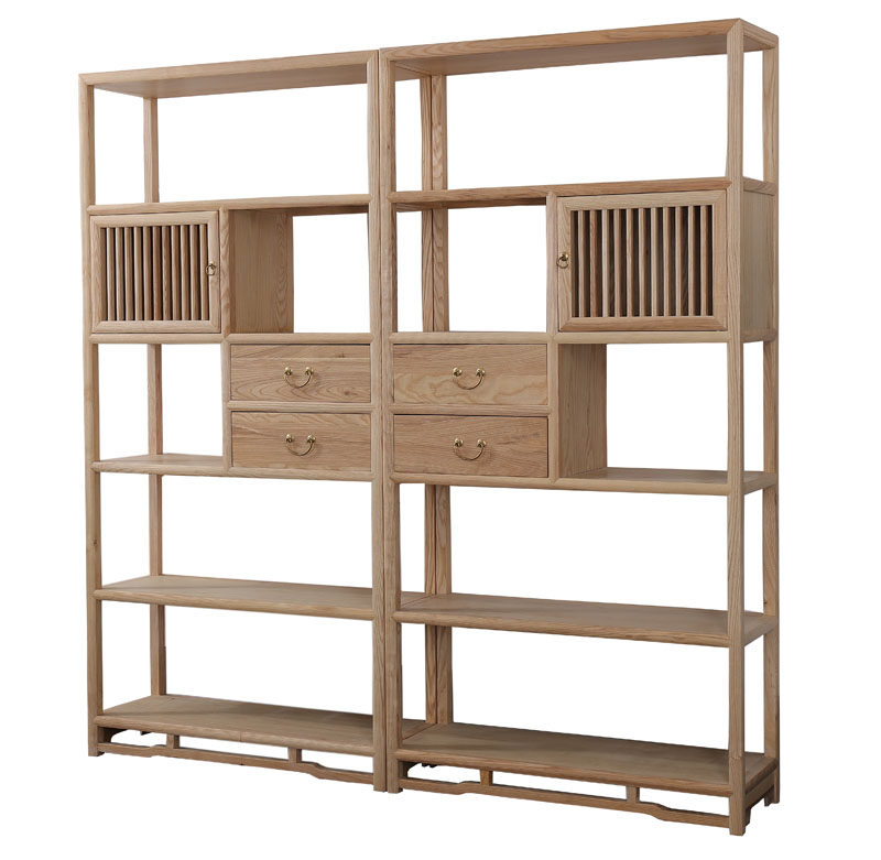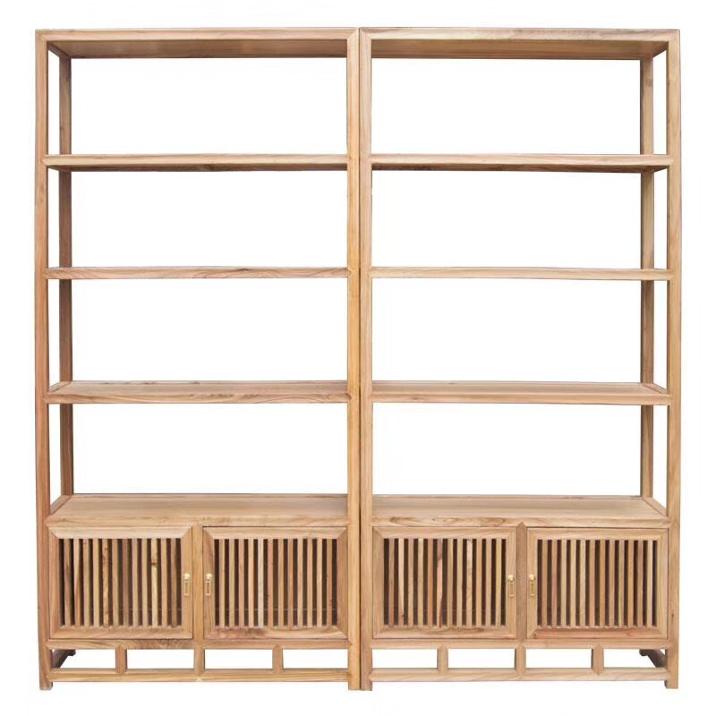 New Chinese style solid wood Bogu bookshelf rack elm tea room tea rack Duobaoge display cabinet antique porch rack