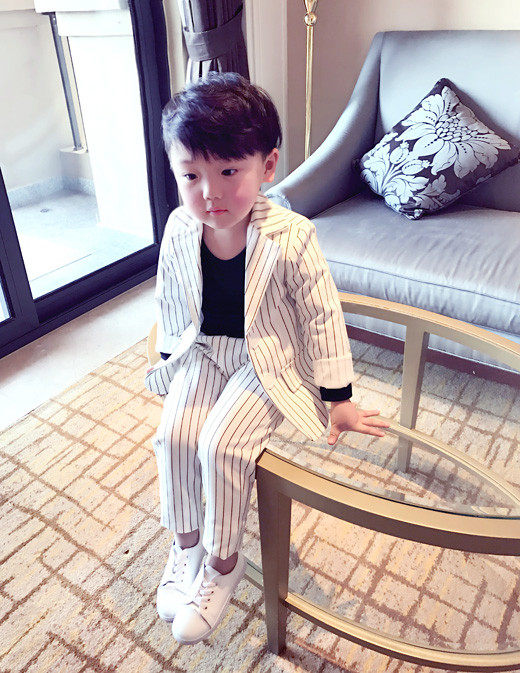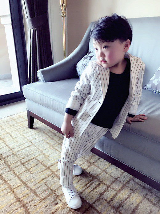 Boys suit suit Children striped autumn two-piece male baby suit 2020 new male treasure dress Korean version
