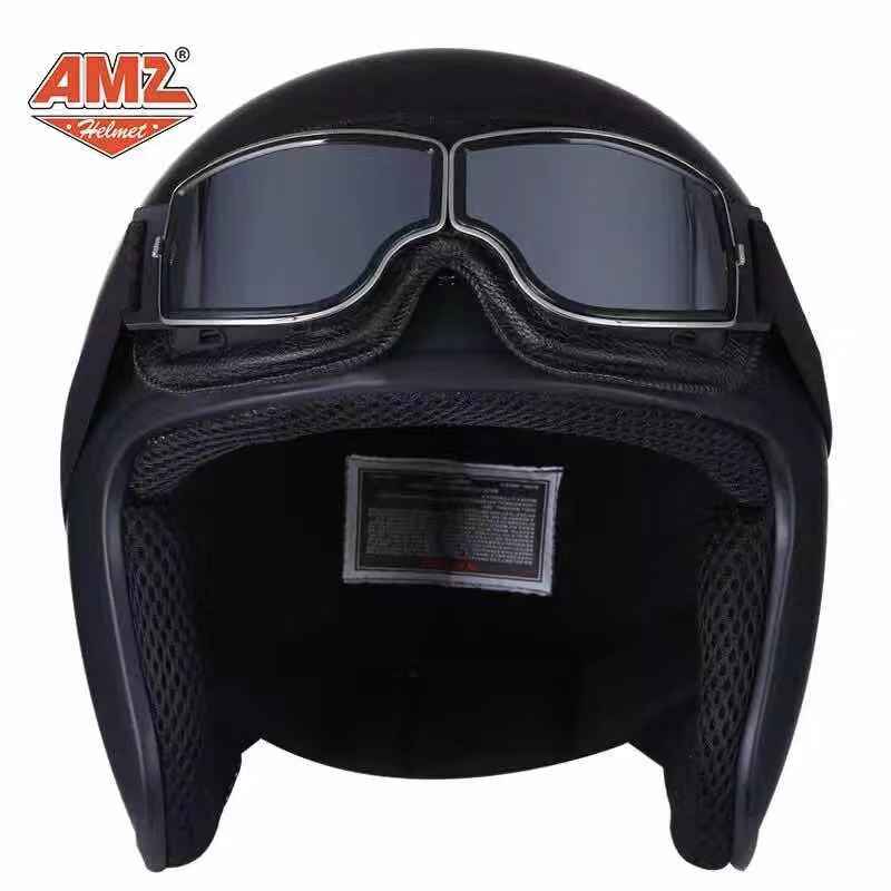 AMZ retro Harley 3 4 Beck Han Tongan safety helmet male and female locomotive electric car Four seasons cool semi-helmets micro-imperfections