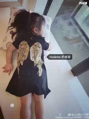 Black short sleeve embroidered wings T black short sleeve wings dress black long sleeve wings dress black long sleeve wings t cotton will have floating wool wash