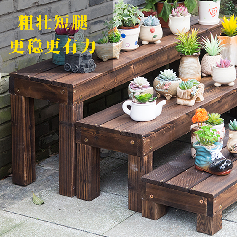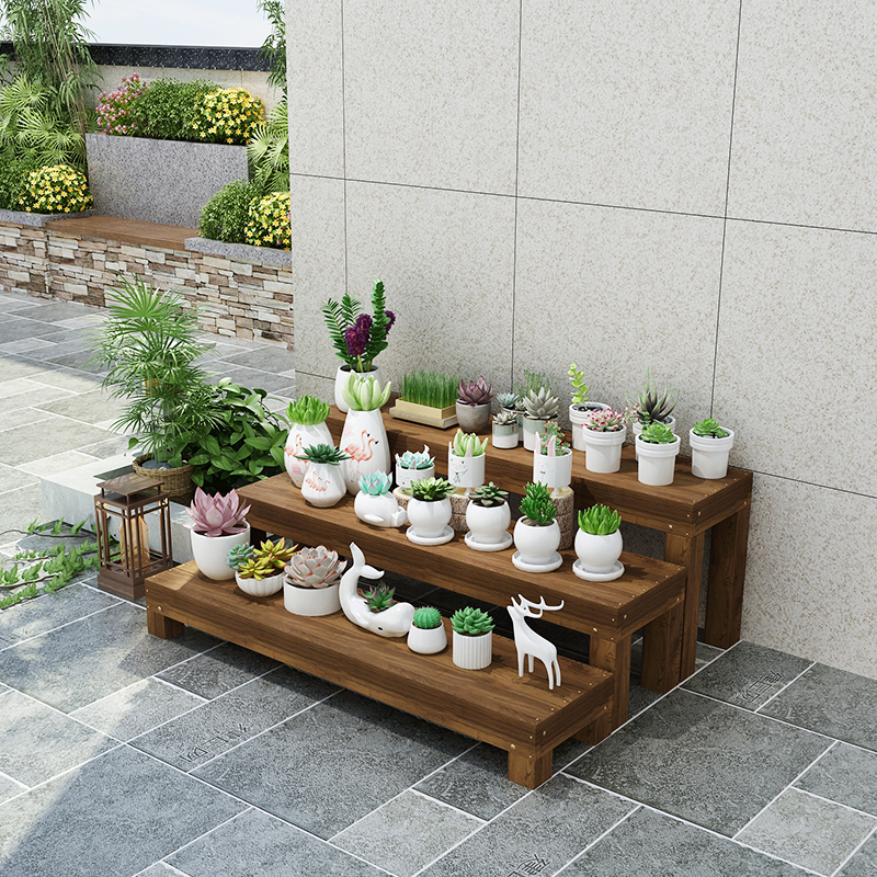 Balcony multimeat outdoor steppe staircase solid wood staircase pot outdoor courtyard anti-corrosion wood shelf
