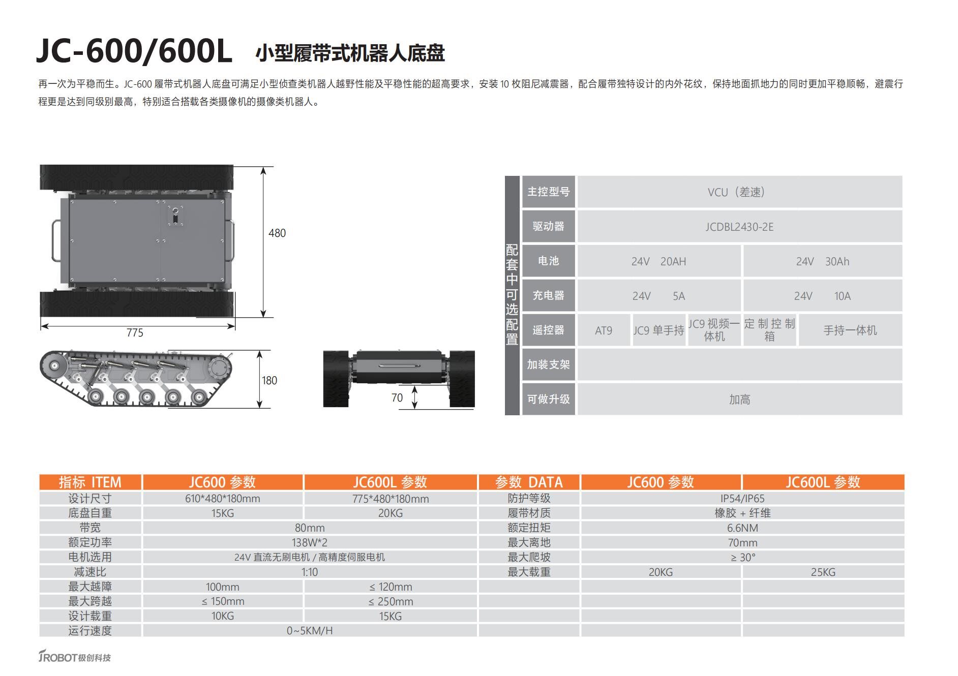 Crawler robot chassis JC-600 Crawler detection robot Metal chassis Light tracked vehicle