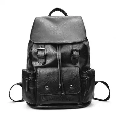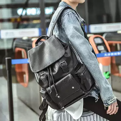 Backpack men's Korean version of the leather fashion personality casual trend backpack student large school bag men's travel British bag