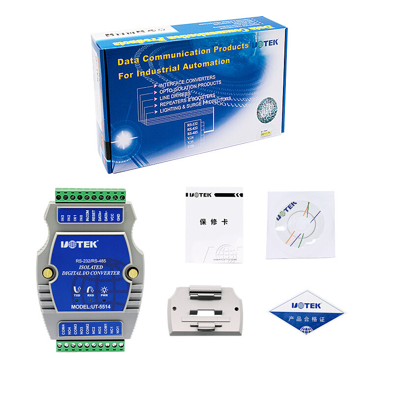 Yutai UT-5514 with photoelectric isolation 232 digital 4-channel switching input and output r485 controller signal converter acquisition r232 transmission module analog module to 485