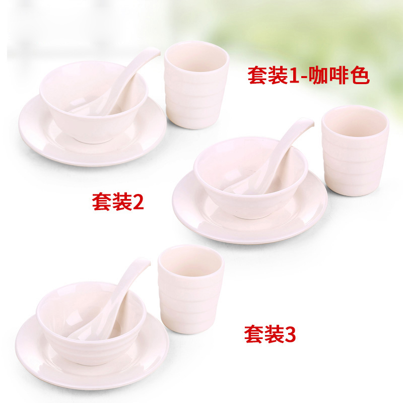 White Pendulum Table Four Sets Cutlery Hotel West Restaurant Rice Bowls rice bowls Thickened Soup Spoon Cups of Tea Dish Trays