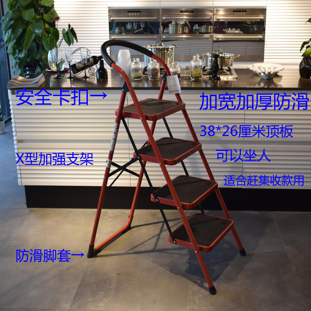 Openg two-three-four-five-step steel folding herringbone ladder wide pedal household ladder widening dual-purpose staircase thickening