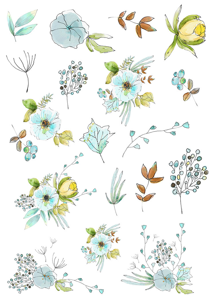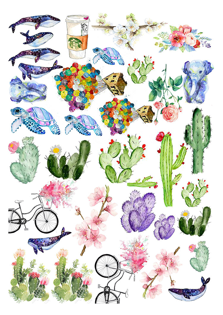 (Uncut) Pocket stickers homemade A4 sulfuric acid paper matt self-adhesive watercolor succulents 15