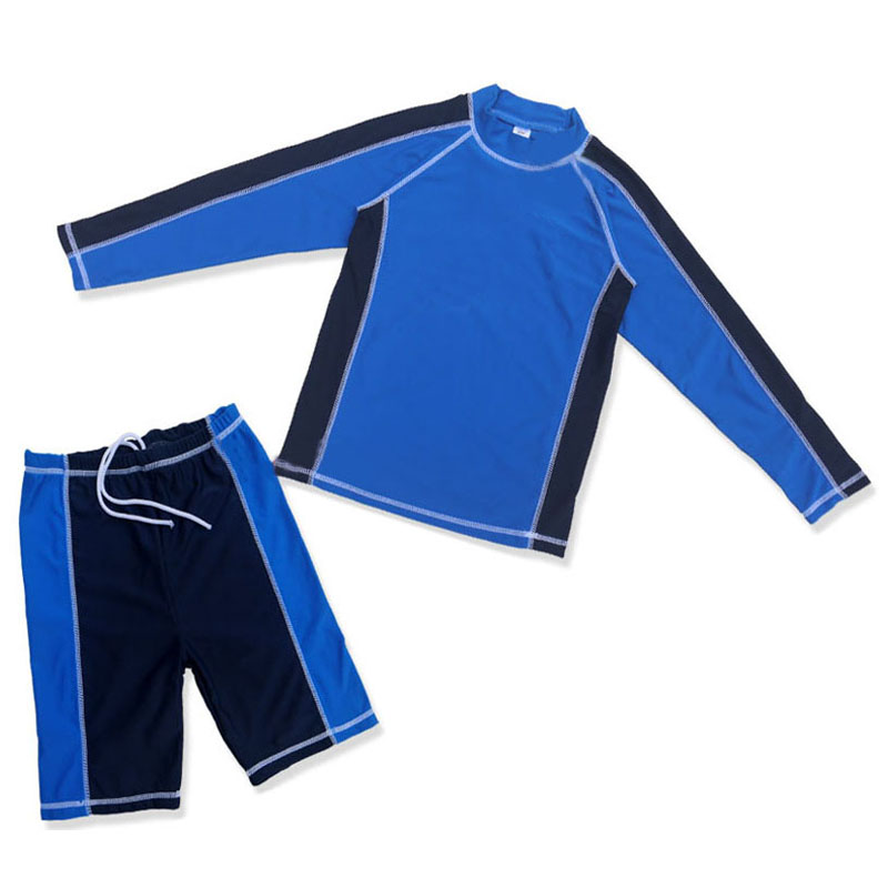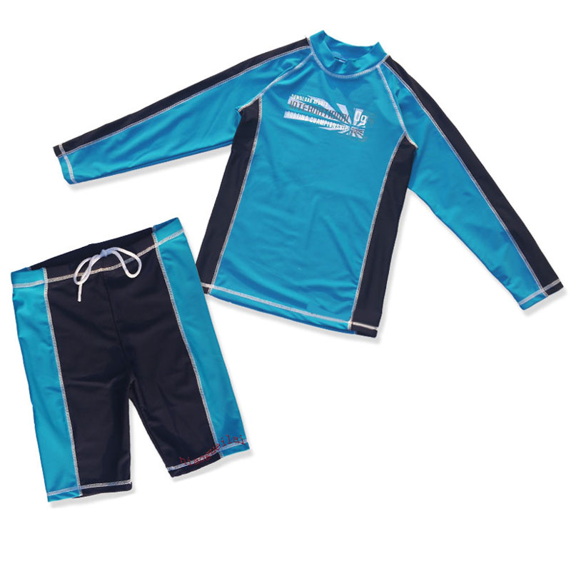 Boys and children's long-sleeved five-point pants surfing swimsuit big children's two-piece snorkeling sunscreen beach hot spring quick-drying 8-17