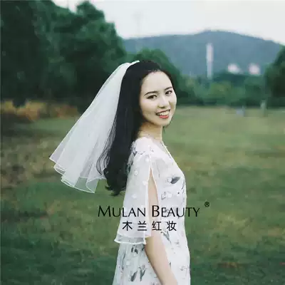 2020 Korean new bride short head yarn wedding headdress Pearl small head gauze with comb photography accessories
