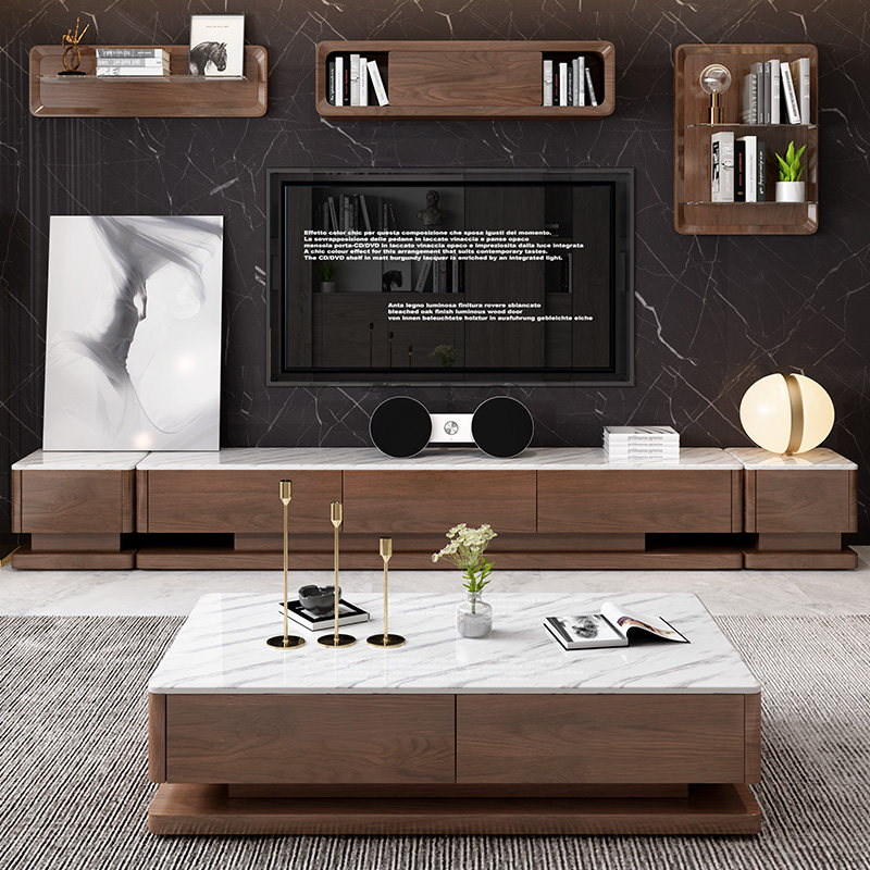 Nordic fire stone coffee table TV cabinet combination wall Modern simple living room Marble TV cabinet Floor cabinet