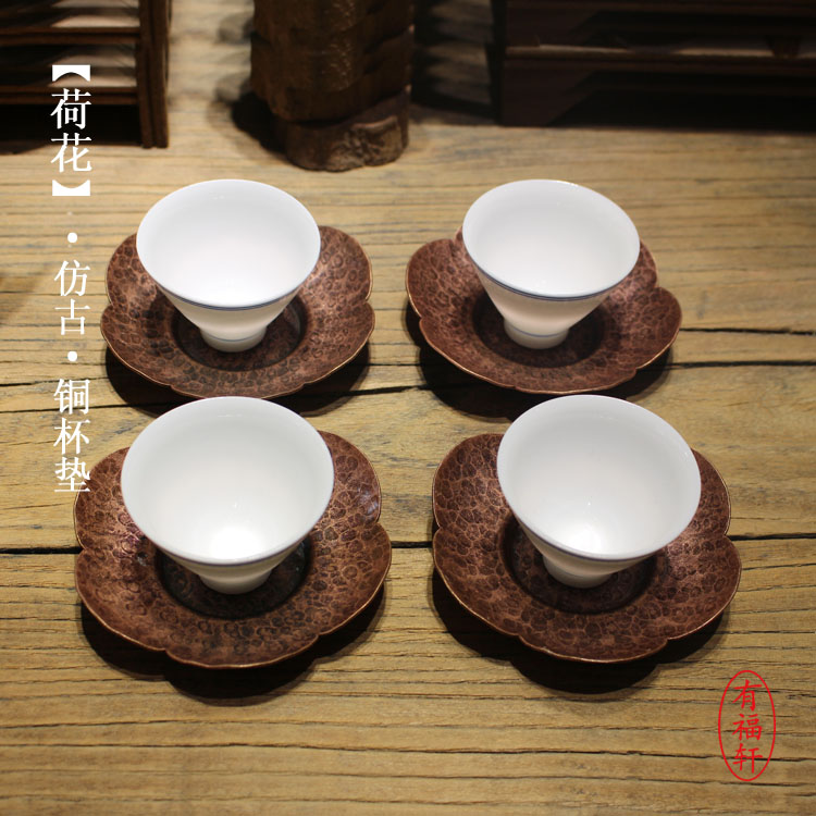 Antique copper cup holder Cup mat Tea ceremony accessories Copper cup mat Copper bronze cup mat Tea cup holder