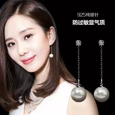New product S925 sterling silver zircon Pearl tassel earrings temperament long earrings ear hanging simple earrings female
