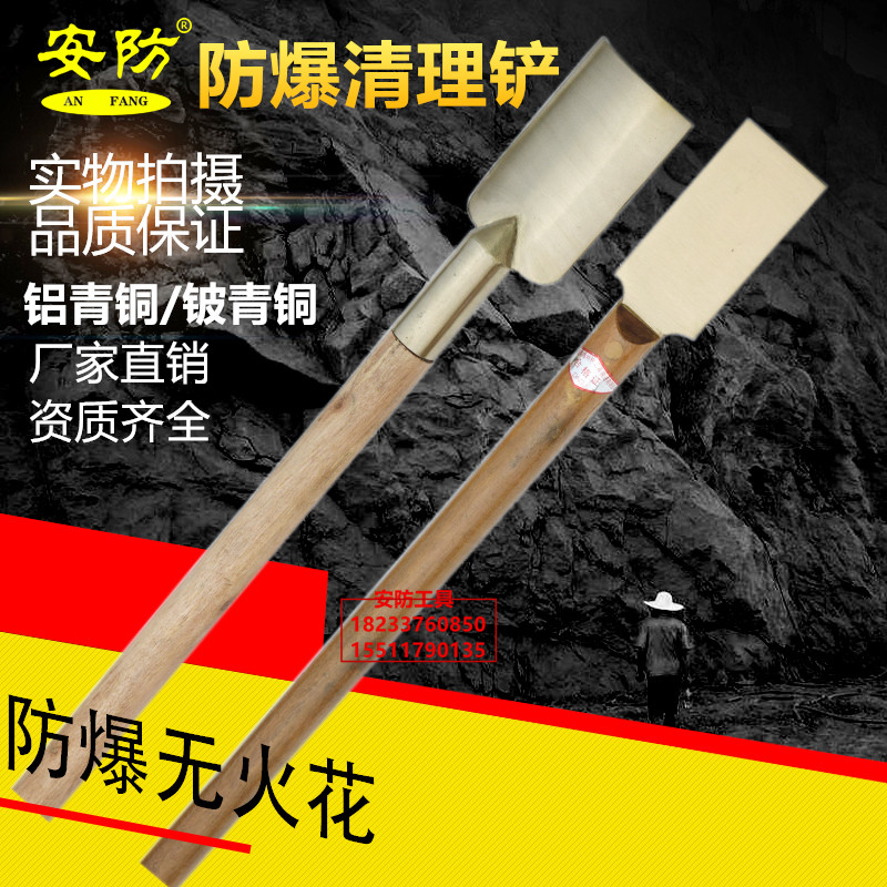 Explosion-proof cleaning shovel arc-shaped cleaning shovel long wooden handle copper shovel flat head rust removal shovel cleaning dirt shovel rust shovel copper shovel knife