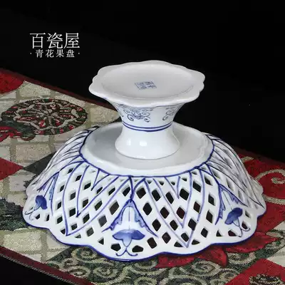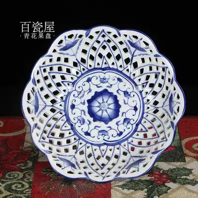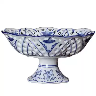 Modern new Chinese style blue and white ceramic candy plate creative simple fruit plate Retro living room coffee table decoration Chinese style