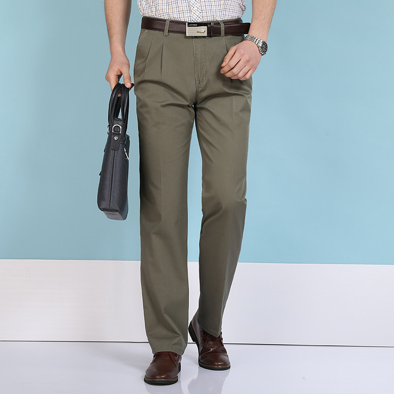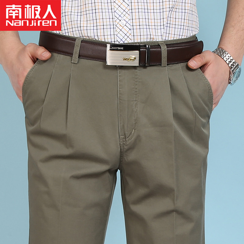 Antarctic people 2021 spring new dad casual pants loose business pure cotton men's pants double pleated thin trousers