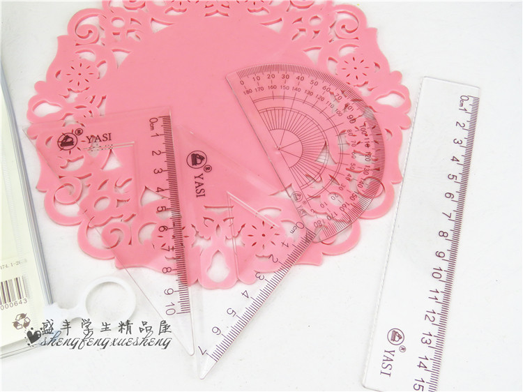 Student stationery transparent learning ruler student drawing ruler triangle ruler protractor four-piece ruler
