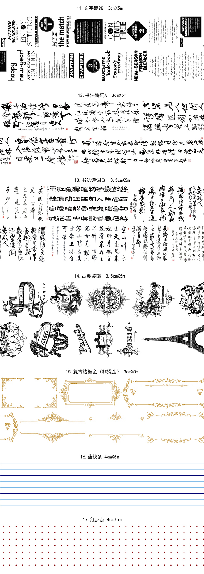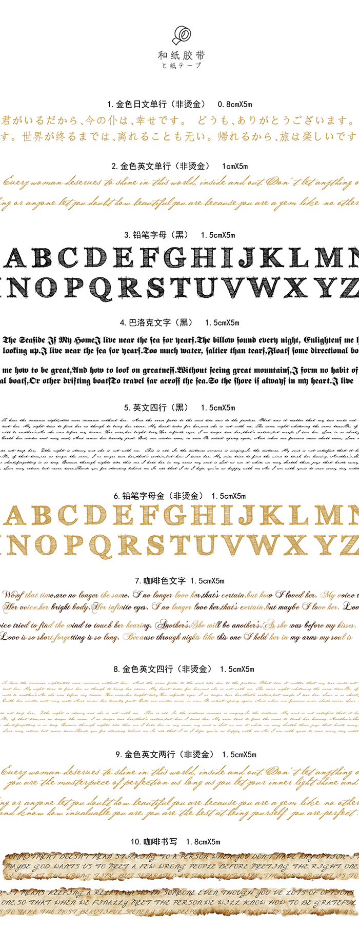 1 gold Japanese single line (non-bronzed) 2 gold English single line (non-bronzed) 3 pencil letter (black) 4 baroque words (black) 5 English four lines (black) 6 pencil letters