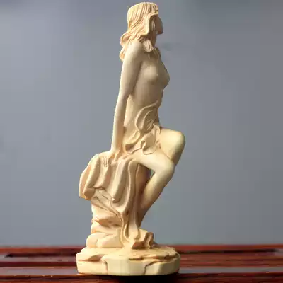 Boxwood carving solid wood handlework carving craft gift decoration Chinese home accessories beauty figure living room decoration goddess