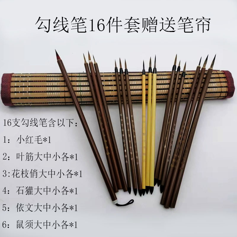Five selected hook-line pen sets to gradually enter the canon wolf mush wire pen 3 sets of art creations Wolf Thread Pen 3 Sleeves Selected Country Painting Brush 4 pieces of professional national painting Boutique Brush 7 pieces