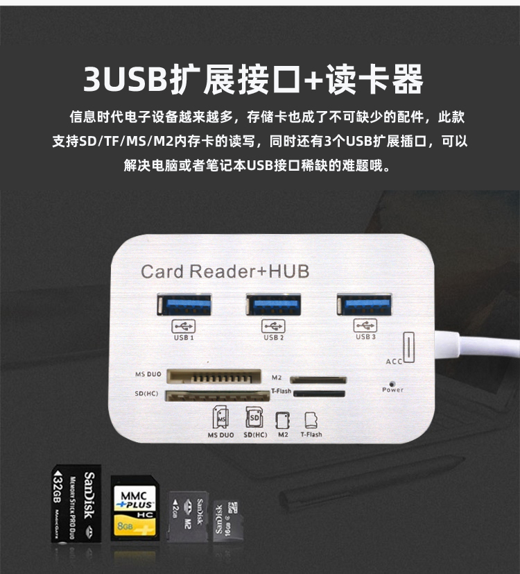 3 0 card reader hub high-speed USB multi-function multi-in-one mini SD TF card reader HUB camera reader