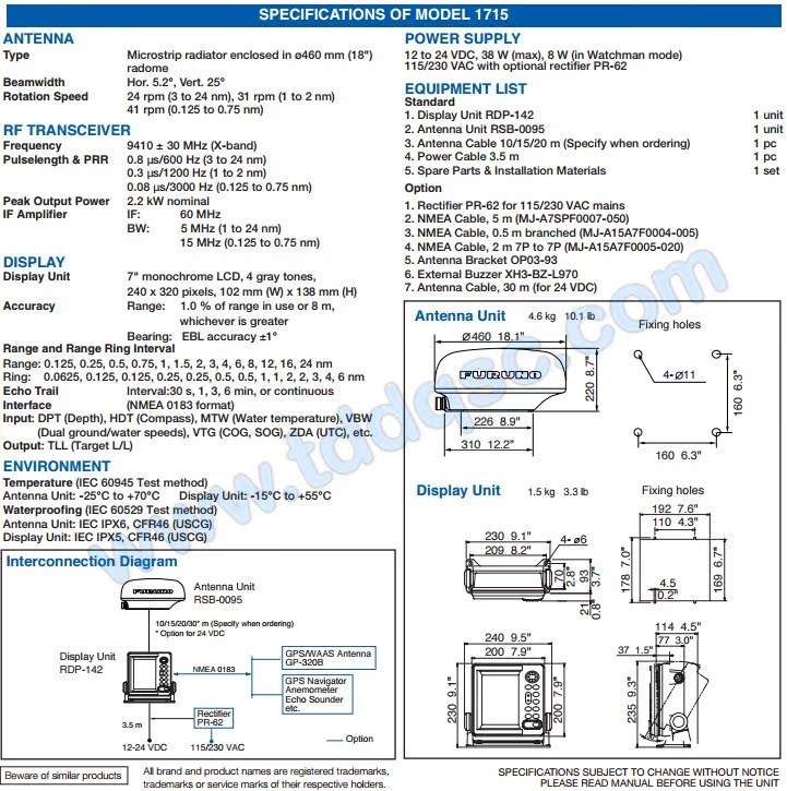 Marine radar Japan FURUNO 1715 nautical radar 24 nautical miles 7 inch display small radar