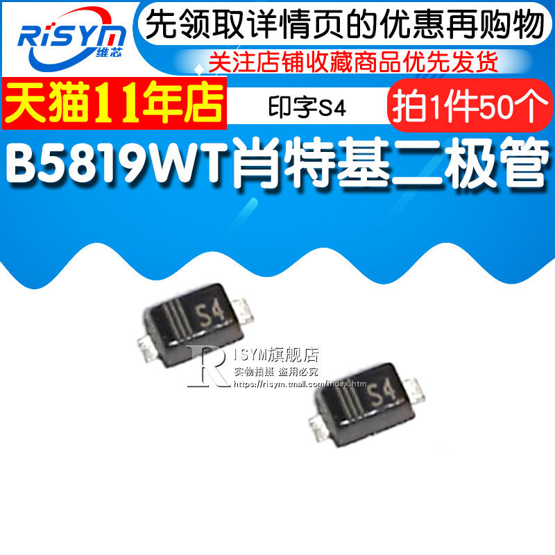 Risym B5819WT Schottky Diode 1N5819 Printed S4 0603 Patch SOD-523 50 pcs