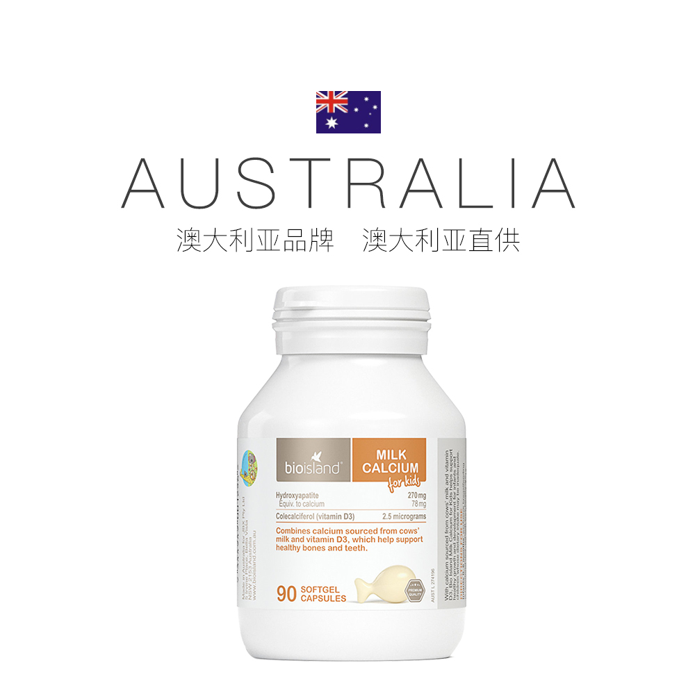 Australia bio island imported infant milk Calcium Soft capsule Children Baby growth VD calcium supplement 90 tablets