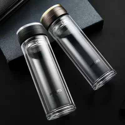 Hals double glass men's and women's office water cup with lid make tea glass household transparent water Cup