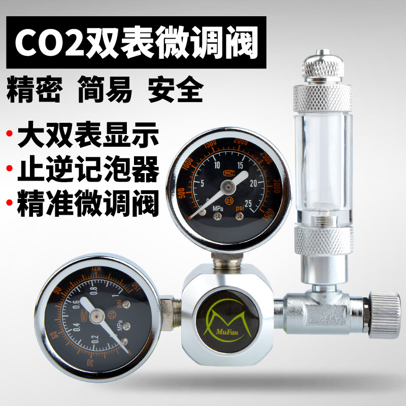 Mu Van grass cylinder electromagnetic pressure reducing table Carbon dioxide cylinder large double table Aquarium co2 pressure reducing valve Aquatic grass pressure gauge