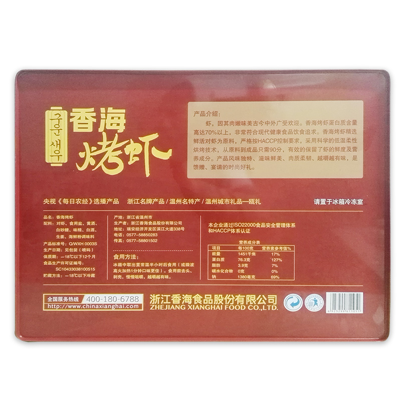 Xianghai iron box grilled shrimp New Year gift box 500g New Year gift gift box Wenzhou specialties instant grilled shrimp prawns