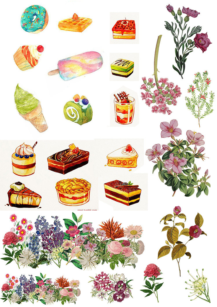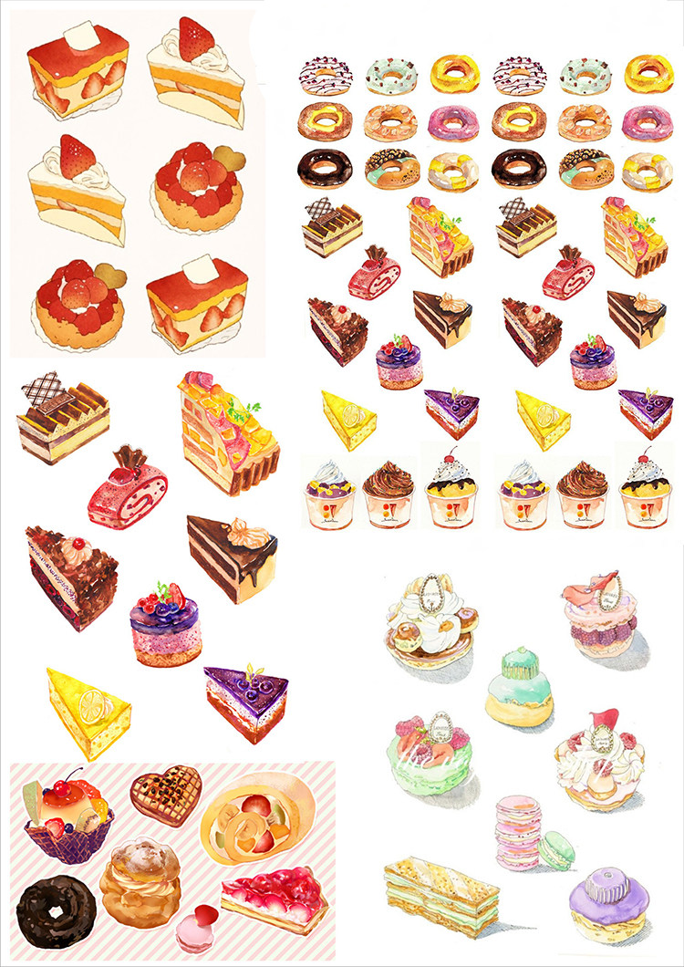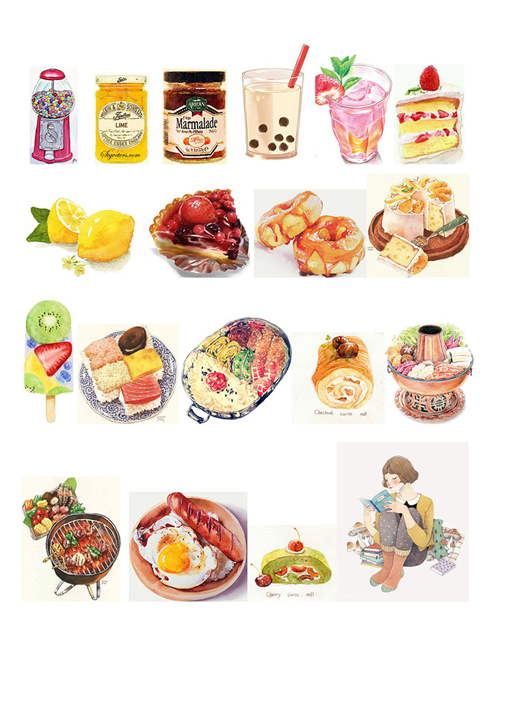 (Uncut)Hand account sticker Homemade A4 sulfuric acid paper Matte Self-adhesive gourmet watercolor food 15