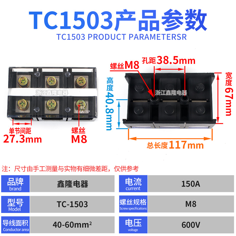 Manufacturer Direct Terminal Terminal Distribution Terminal Box TC-1503 150A 3P Wiring Panel