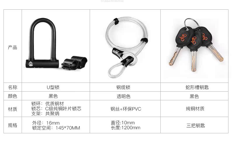 Black U-lock (anti-12 tons hydraulic shear silicone shell serpentine B-class lock core) Black U-lock thickened 1 2 m cable lock thickened 1 2 m cable