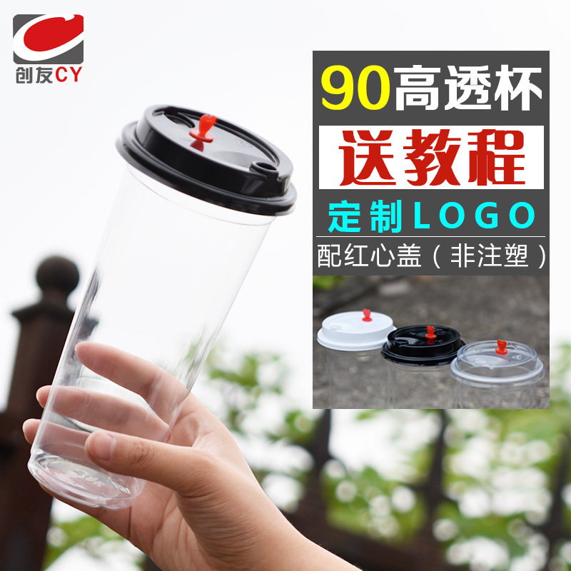 90 thickened high overdraft disposable milk tea cup plastic cup juice cold drinks packed cup 700ml set for 1000 only clothes