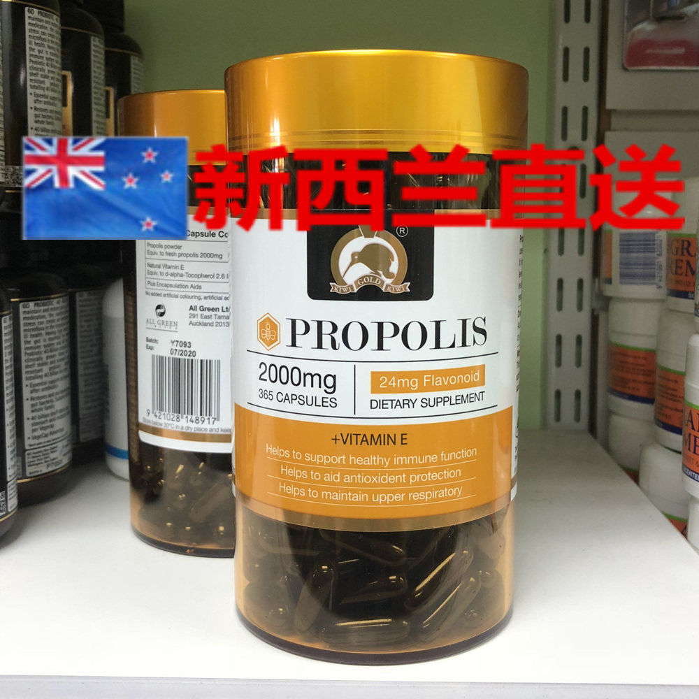 Direct mail New Zealand GOLD KIWI 2000mg black propolis capsules 365 capsules immune upper respiratory tract health