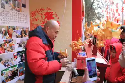 Intangible cultural heritage old Beijing folk show sugar blowing people warm-up activities hot scheduled DIY