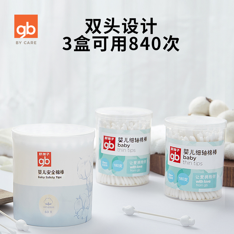 gb good baby baby cotton swab baby special cotton swab cotton double head non-fluorescent (60 sticks + 180 sticks * 2 boxes)