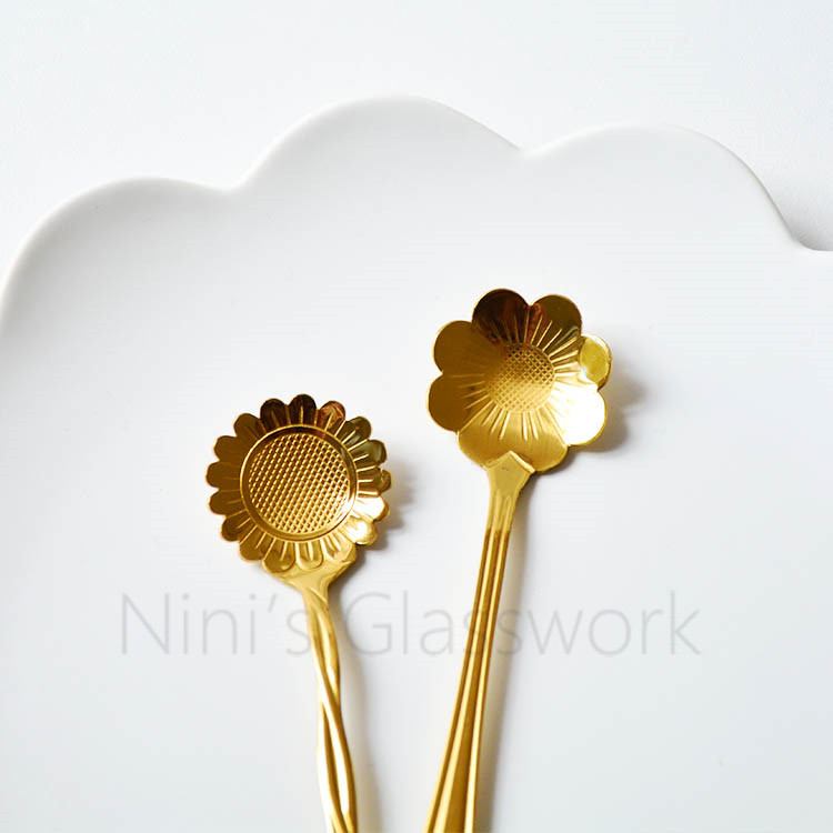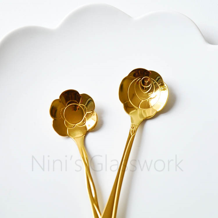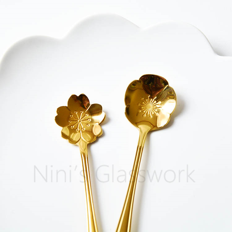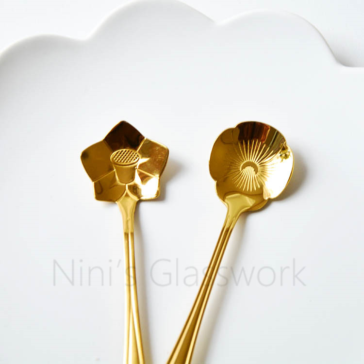 Japanese small fresh gold light luxury coffee spoon Cold drink spoon Net red cherry spoon Long handle dessert spoon Stainless steel
