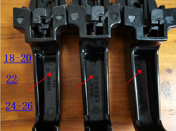 18-20 upper handle 22 upper handle 24-26 upper handle 18-20 lower handle 22 lower handle 24-26 lower handle 18-20 upper and lower handle 22 upper and lower handle 24-