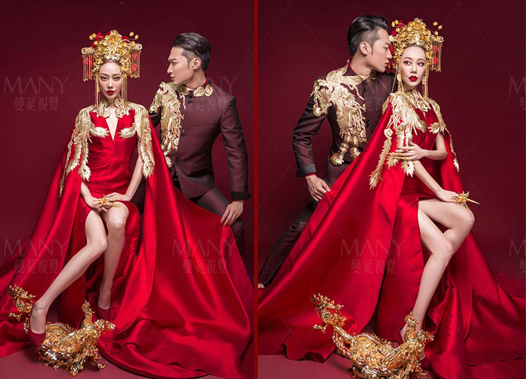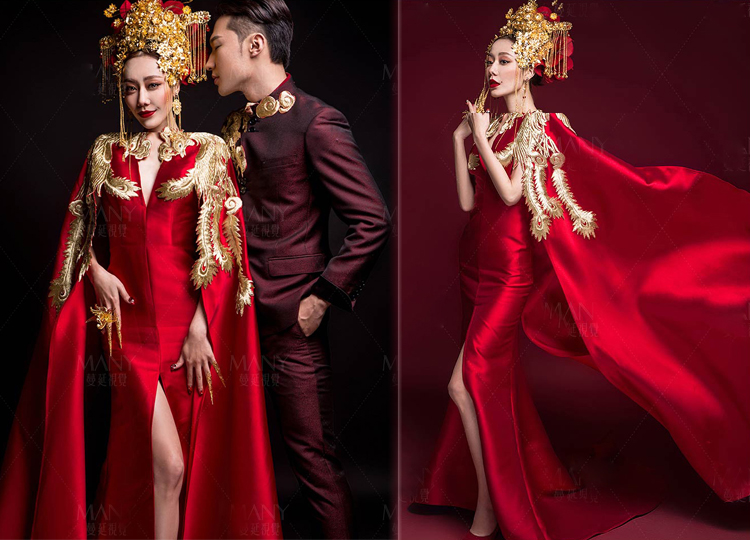 New photo studio theme clothing exquisite wedding dress Chinese style red Chinese retro catwalk photo cloak dress